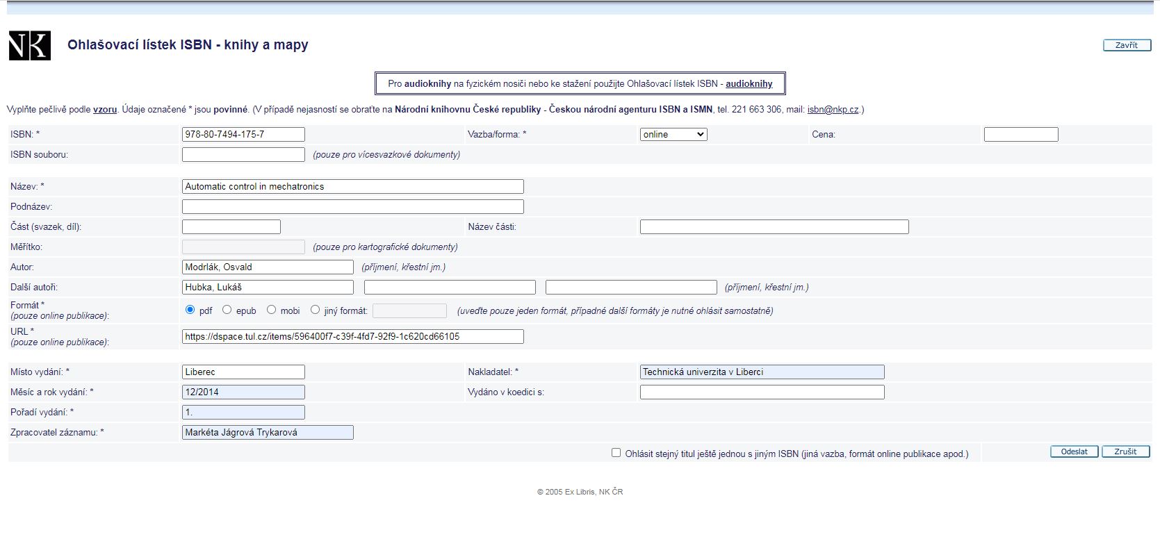 MODRLÁK, O. a L. HUBKA. Automatic Control in Mechatronics. 1st edition. Liberec: Technical University of Liberec, Faculty of Mechatronics, 2014. ISBN 978-80-7494-175-7.