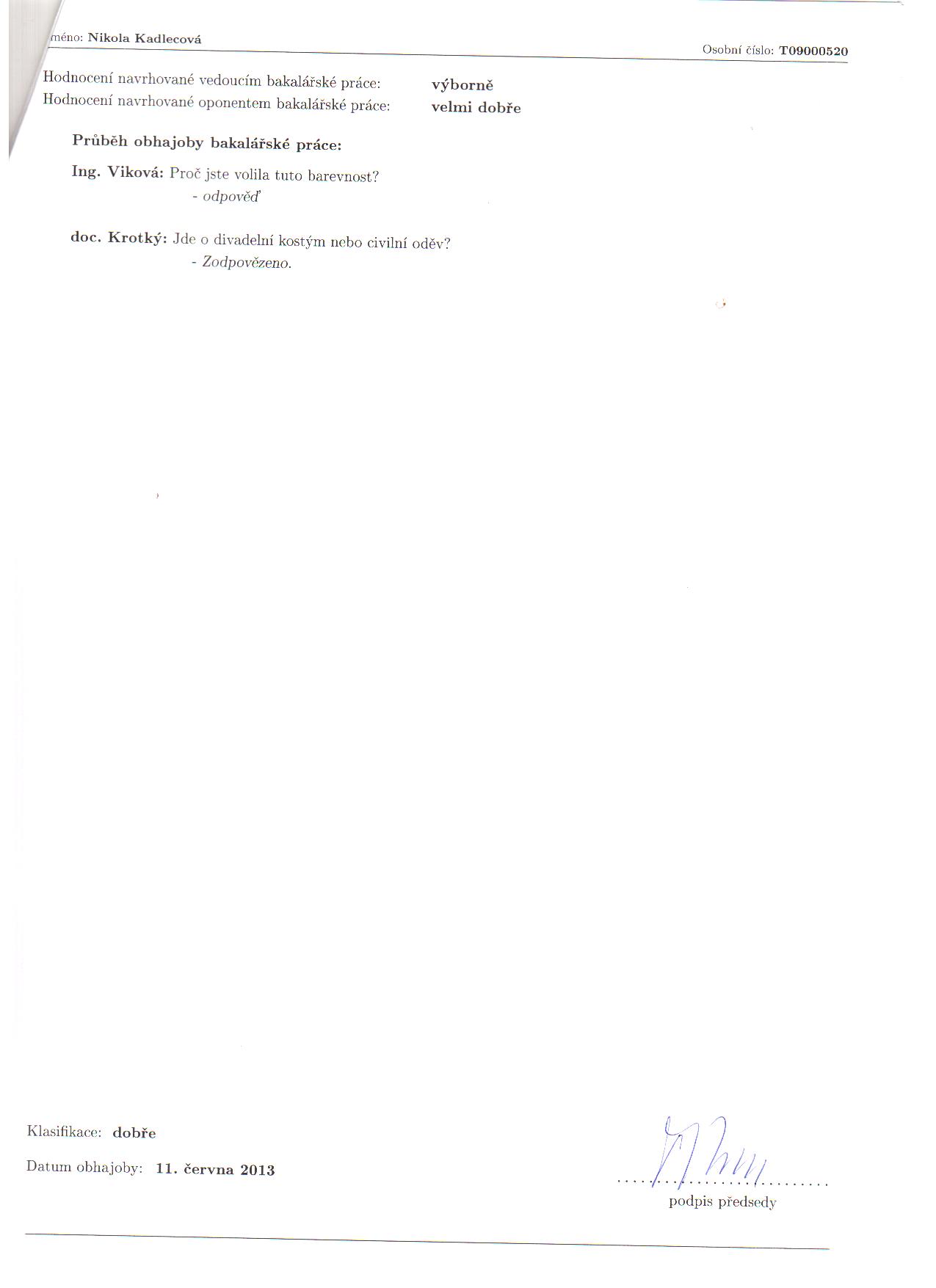 Hlavní inspirací mé bakalářské práce se stala divadelní hra Sen noci svatojánské od známého spisovatele Williama Shakespeara, která se odehrává v lese, kde žijí elfové a víly. Tisk a výběr barev se stal hlavním prvkem znázornění odlišností postav. Byly rozděleny na postavy ze skutečného a fantazijního světa. Proto bylo u třech modelů použito pestrých expresivních barev v kontrastu dalších tří modelů, kde jsou použity spíše barvy impresivní. Je to dámská kolekce. Neznázorňuje přímo postavy z divadelní hry, ta je pouze inspirací. Ke každému oděvu patří i maska, která doplňuje tisk a barevnost a udává tím celek modelu.